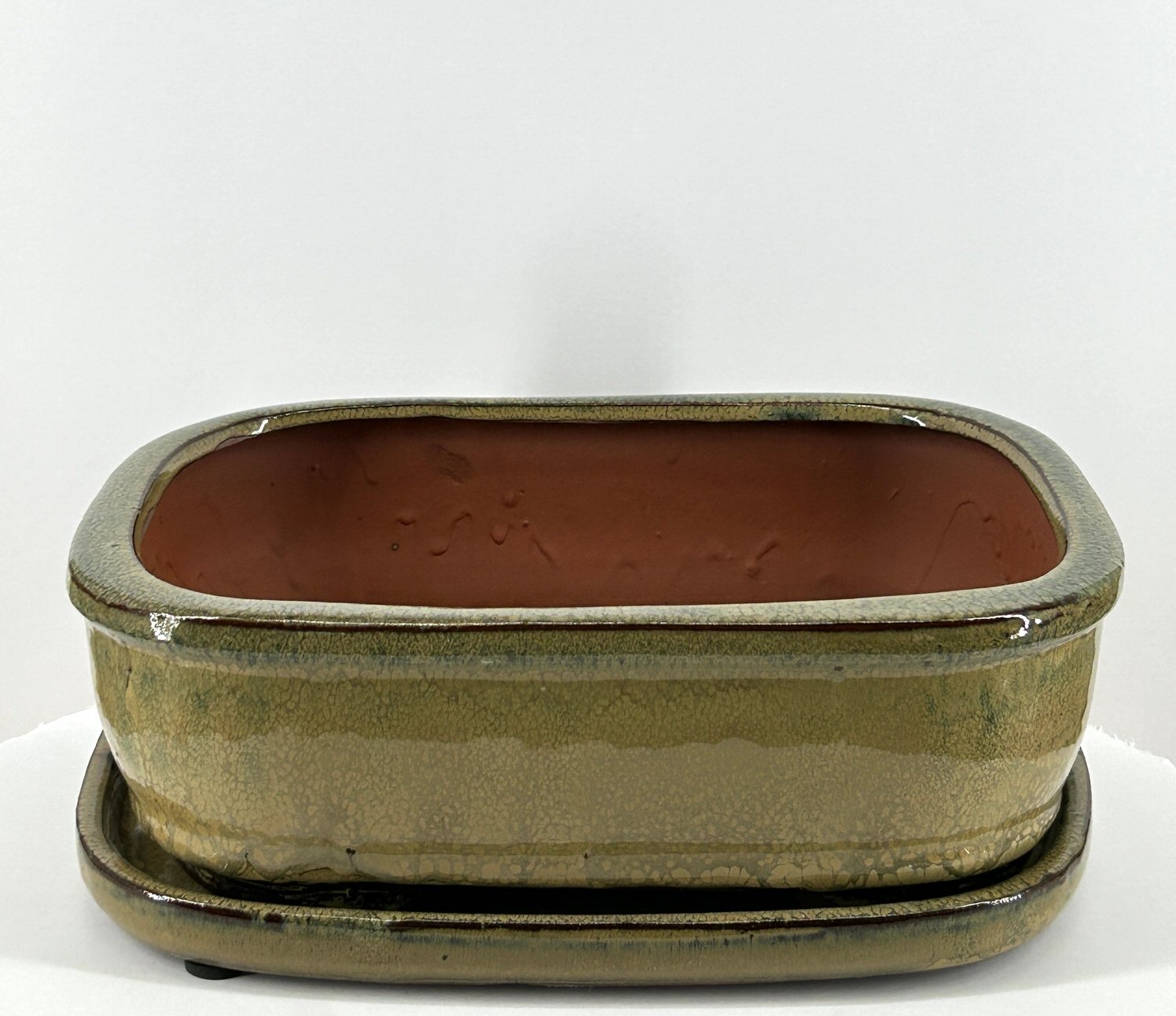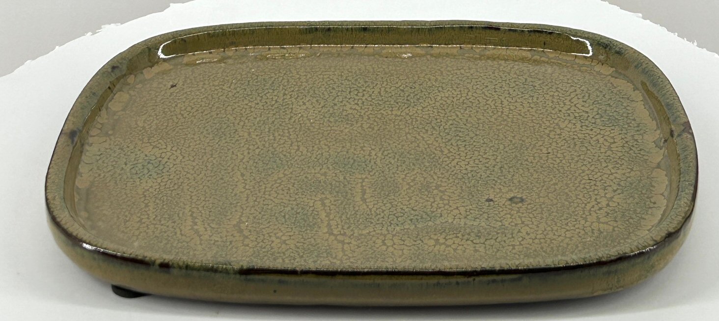 Olive Green Rectangle Ceramic Bonsai Pot<br>With Humidity Drip Tray