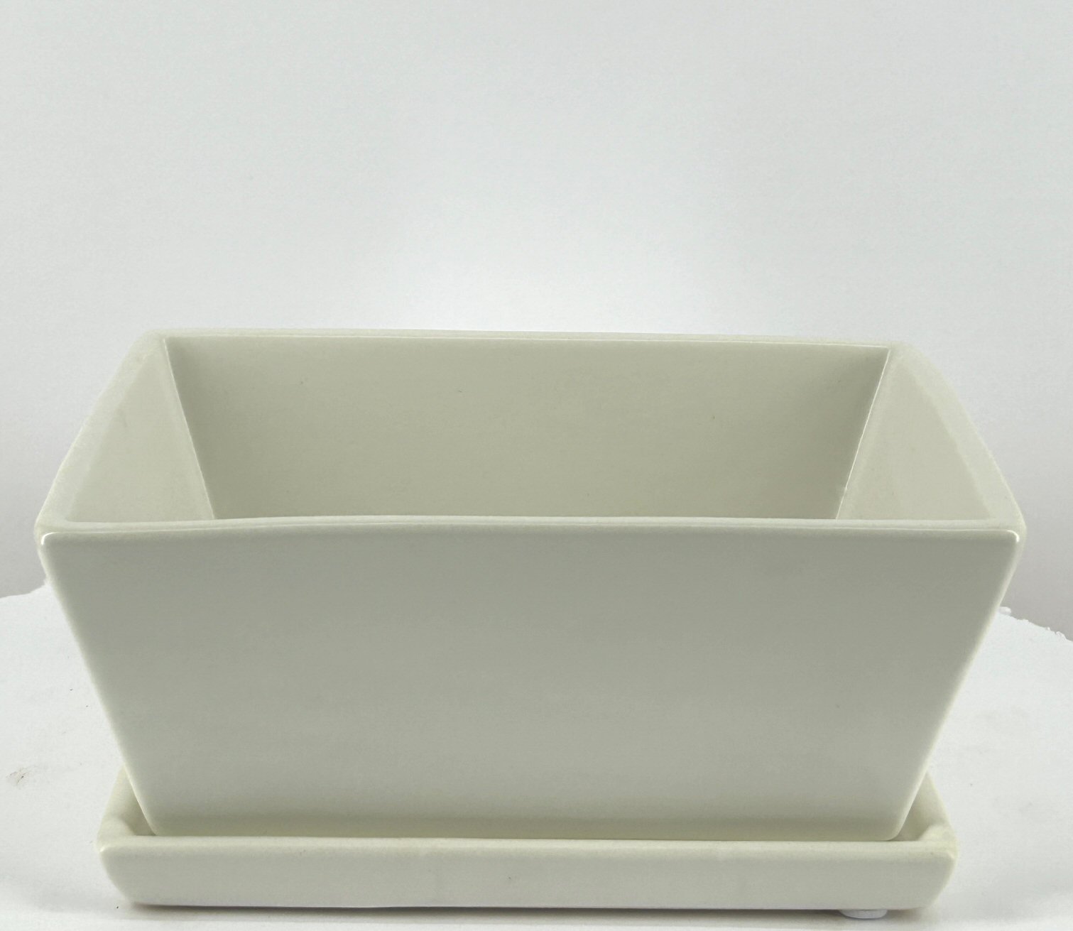 Matte White Rectangle Bonsai Pot<br>With Humidity / Drip Tray<br>